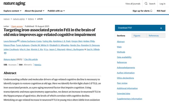 研究で注目されたのは「FLT1」というたんぱく質。FLT1は体内の鉄の貯蔵に関連していることが知られていましたが、脳の老化にどう影響するのかは明らかになっていませんでした。