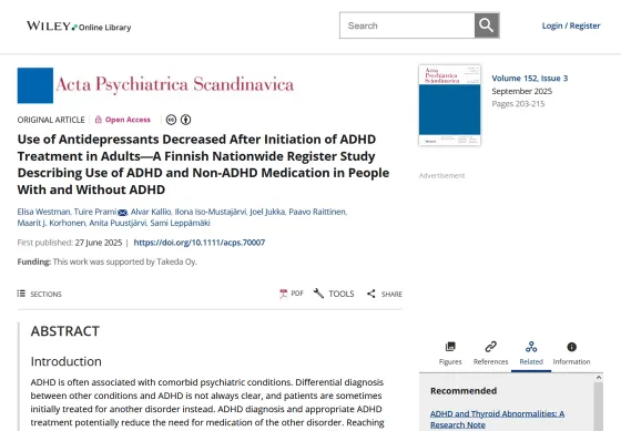 注意欠如・多動症(ADHD)は、不注意や多動性、衝動性を特徴とする神経発達障害であり、成人になっても症状が続くことが多いとされています。そんな中、フィンランドで行われた大規模な調査 によって、成人がADHDと診断されると、抗うつ薬の使用量が減る傾向にあることが明らかになりました。