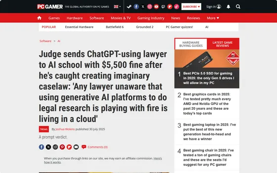 AIで存在しない判例を生成した弁護士に5500ドルの罰金、さらに「教育が必要」との指導