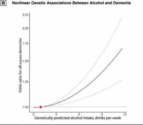 - 遺伝子解析により、飲酒量が多いほど認知症リスクが高いことが確認