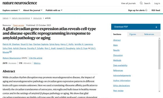 最新の研究により、脳内の老廃物を処理する細胞が持つ“概日リズム(体内時計)”が、アルツハイマー病によって大きく乱されていることが明らかになりました。