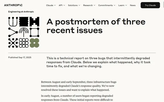 AI「Claude」の応答品質が低下した原因は3つのバグだった 🐞🤖