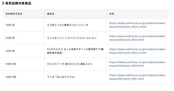 今回のシステム障害により、飲料・食品製品の発売スケジュールにも遅れが発生しています。