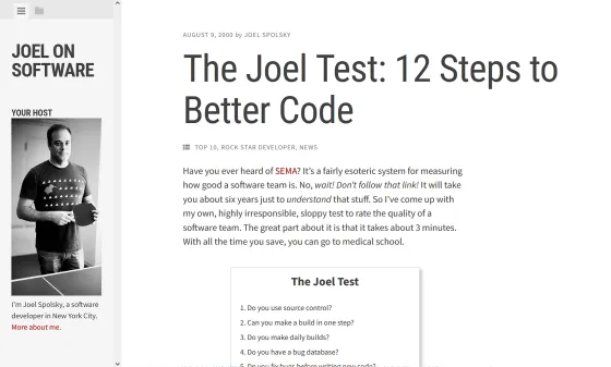 🧭1. “The Joel Test: 12 Steps to Better Code” by Joel Spolsky