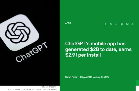 • ChatGPTモバイルアプリは 累計20億ドル(約2940億円)以上を売上