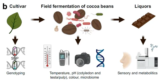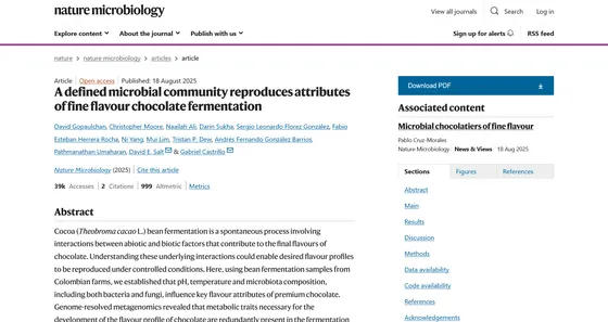 そんな中、イギリスの ノッティンガム大学 を中心とした国際研究チームが、カカオ発酵を科学的に解析。さらに、特定の微生物を組み合わせることで、狙った風味を再現できることを実証しました。