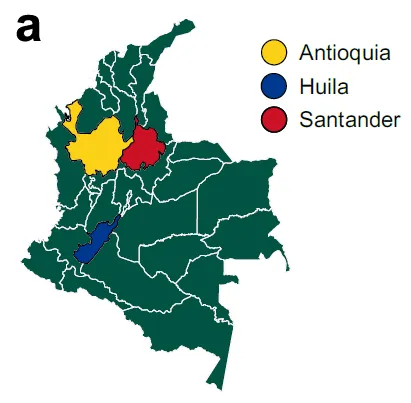 研究チームは、コロンビアのカカオ主要生産地(サンタンデール、ウイラ、アンティオキア)で発酵の詳細を調査。
