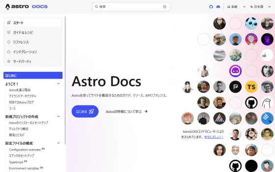 Astroのドキュメントは以下のリンク先で公開されています。はじめに | Docshttps://docs.astro.build/ja/getting-started/