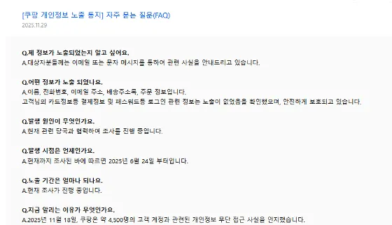 - クーパン公式 FAQ(個人情報流出に関する説明資料)