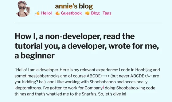 📖 出典:How I, a non-developer, read the tutorial you, a developer, wrote for me, a beginner – Annie Müller