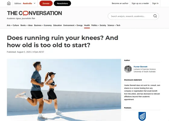 南オーストラリア大学の運動科学講師、ハンター・ベネット氏は「ランニングが膝に長期的なダメージを与えるのは本当か?」という疑問について、科学的根拠をもとに解説しています。