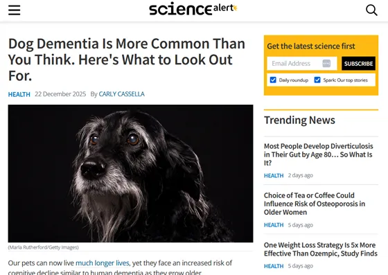 - ScienceAlert「Dog Dementia Is More Common Than You Think. Here’s What to Look Out For.」