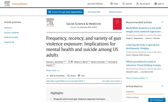 「銃による暴力への暴露は、間接的な場合でも深刻なメンタルヘルスへの影響を及ぼす。社会として、銃暴力に関連したメンタルケアに特化した介入が必要である。」