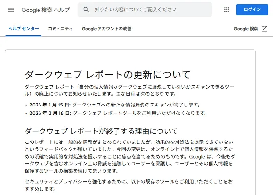 「ダークウェブレポート(Dark Web Report)」を2026年2月16日に終了すると発表しました。
