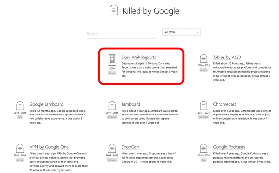 Googleは、ダークウェブレポートの代替として