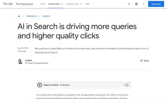 つまり、「浅い検索はAIで完結するが、深い検索は引き続きトラフィックにつながる」というのがGoogleの見解です。