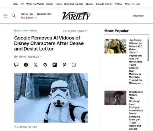 📌 何が起きたのか?──ディズニーがGoogleに突きつけた削除要求