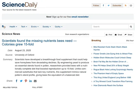ð åºå žïŒScientists found the missing nutrients bees need â Colonies grew 15-fold | ScienceDaily