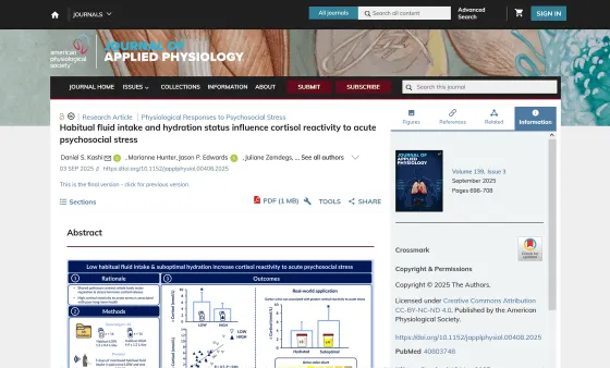 リヴァプール・ジョン・ムーア大学の研究チームは、日常的な水分摂取量とストレスホルモン「コルチゾール」の反応との関係を調査。その結果、水分不足の人はストレスに対して過剰に反応する ことが明らかになりました。