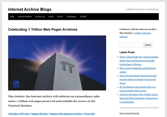 🌍インターネットアーカイブ、保存ページ数がついに「1兆」を突破 世界の記録が永遠に残る時代へ