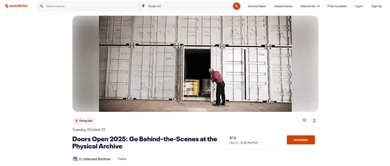 インターネットアーカイブの物理コレクション倉庫の見学ツアーが実施される予定です。