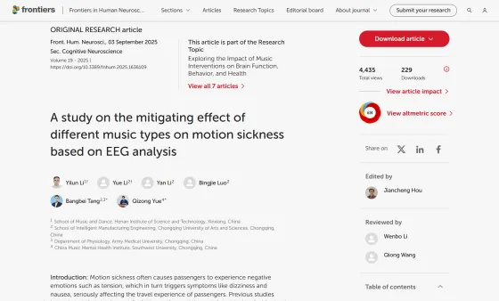 中国・河南科技学院の研究チーム(イツリン・リー氏ら)は、音楽が乗り物酔いにどのような影響を与えるのかを調べるため、30人の被験者を対象に実験を行いました。