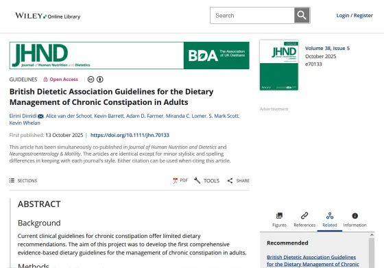 2025年10月、イギリス栄養士協会(British Dietetic Association:BDA)が、慢性便秘に悩む成人向けの新しい食事管理ガイドラインを発表しました。
