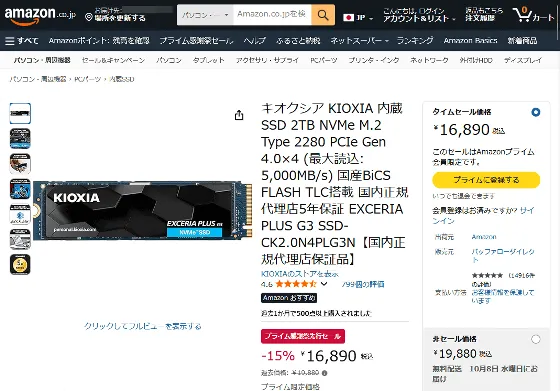 記事執筆時点(2025年10月)では、大容量・高性能SSDが依然として手頃な価格で購入可能です。