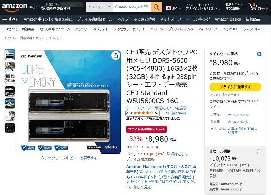 🧠 Amazon | CFD DDR5-5600 32GB(16GB×2)メモリキット