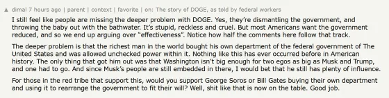 Hacker News上でも、DOGEに関する議論は炎上状態。