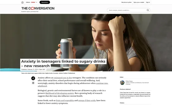 - The Conversation:Anxiety in teenagers linked to sugary drinks – new research