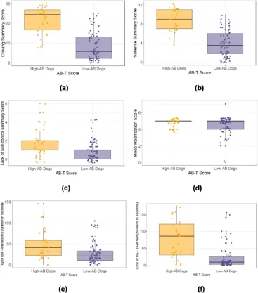 高AB犬は明確に高いスコアを示しています。