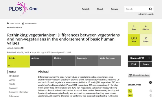 ポーランドのSWPS大学の社会心理学者が行ったこの研究は、菜食主義者の動機やアイデンティティをより根本的な価値観の視点から捉え直す、非常に興味深い内容です。