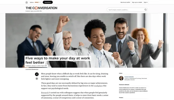 マンチェスター・メトロポリタン大学の組織心理学講師イオアニス・クラツィオティス氏は、この3要素を満たしやすくするための「職場で気分のいい1日を作る5つの提案」を紹介しています。ここからは、内容を“使える形”に落とし込んで解説します。🛠️