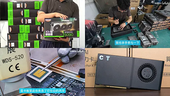 動画では、RTX 5090をAI用ボードに改造する流れが詳細に映し出されています。